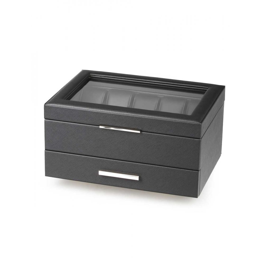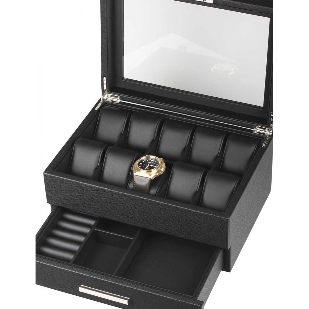 | Kolekcia | Uhren-, und Accessoires-Box aus Kustleder [10 schwarz mit Schublade |
